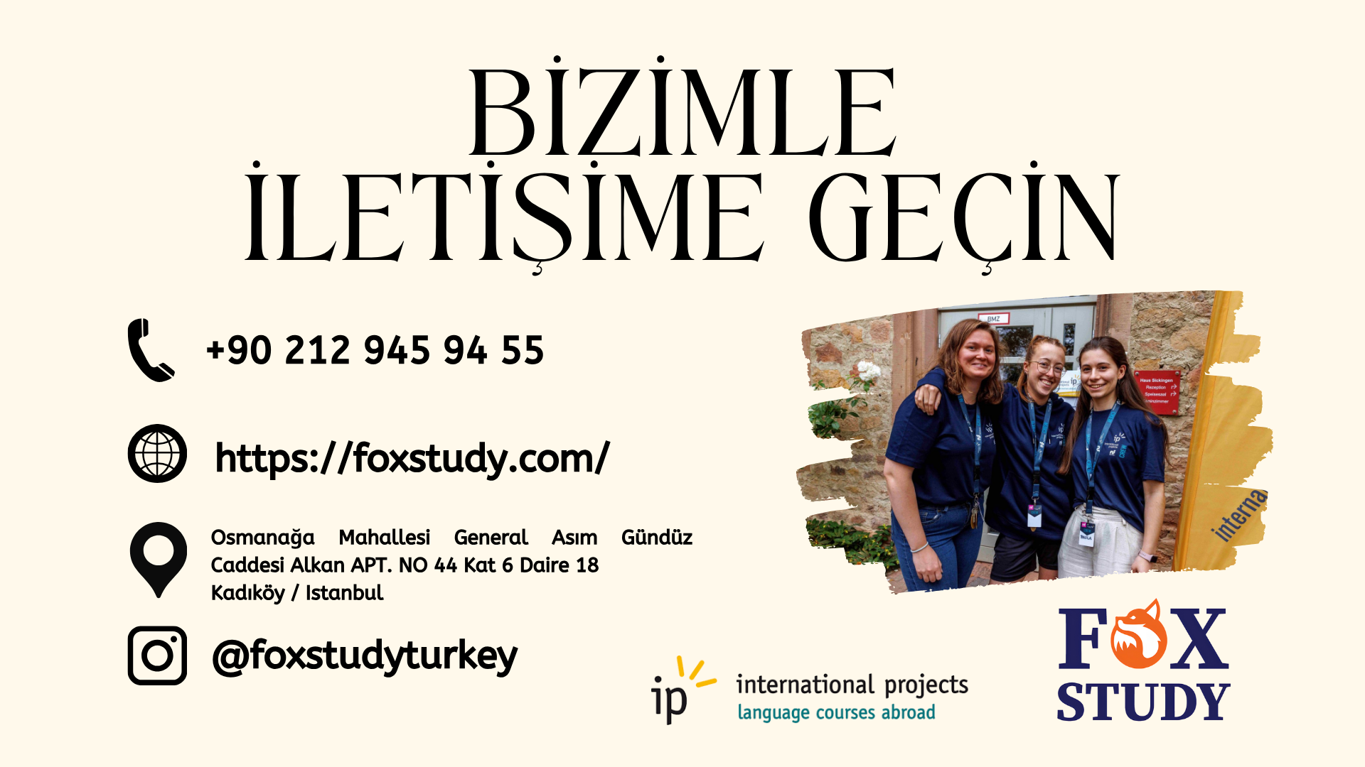 Fox Study ailesi olarak öğrencilerimize firma garantisi ile yurtdışı eğitim danışmanlığı sunuyoruz. Firmamızın felsefesi öğrencilere bu yolculukları sırasında gereken her türlü desteği vermek üzerine kurulmuştur.